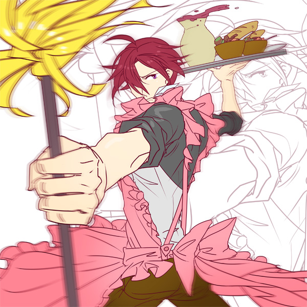 オーダー取って給仕も遣って掃除もするけど、エプロンはぴんくのひらひらしか無い(残り物)と言われた悲劇的な。