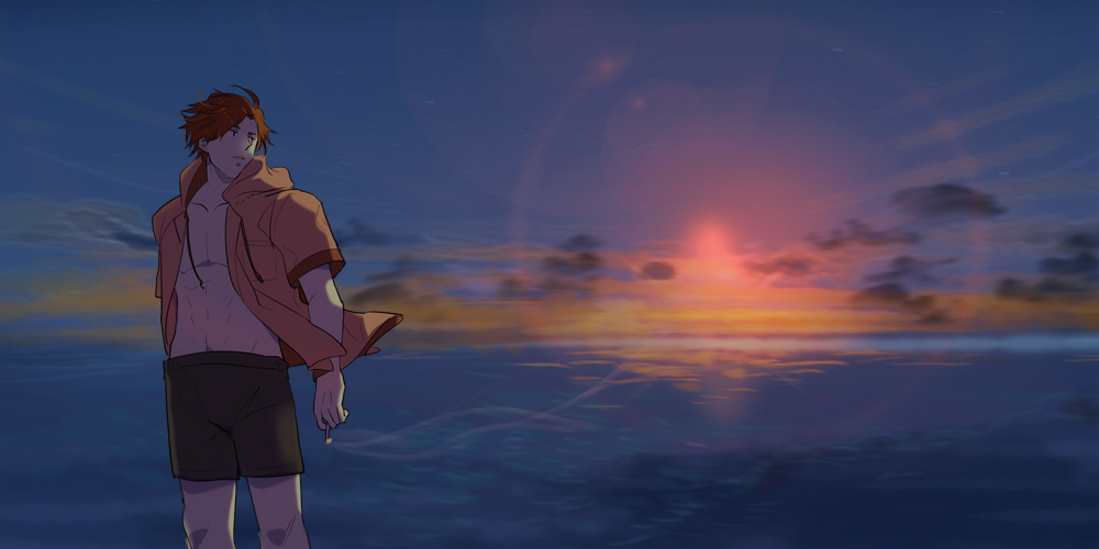 男の水着姿は皆損(みなそん)しかしないのであまり描かない派な自分ですが、背景メインのキャラパーツならいんじゃね?的な感じで。